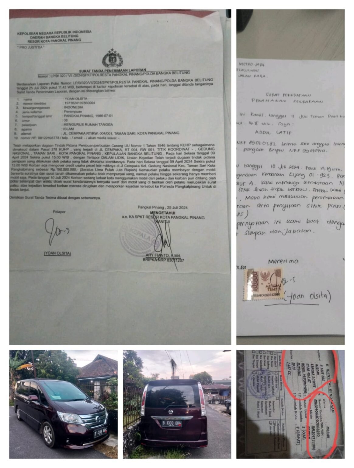 Bukti tambahan juga muncul dari luar Bangka Belitung. Berdasarkan Surat Pernyataan Penahanan Kendaraan yang diterbitkan Direktorat Lalu Lintas Polda Metro Jaya, Satlantas PJR, tertanggal 11 Juli 2024, aparat kepolisian mengamankan kendaraan Nissan Serena dengan nomor polisi B 1339 BPS karena menggunakan STNK palsu. Surat itu ditandatangani oleh Bripka Abdul Latif beserta saksi anggota polisi lainnya, serta diterima langsung oleh Yoan Olsita.