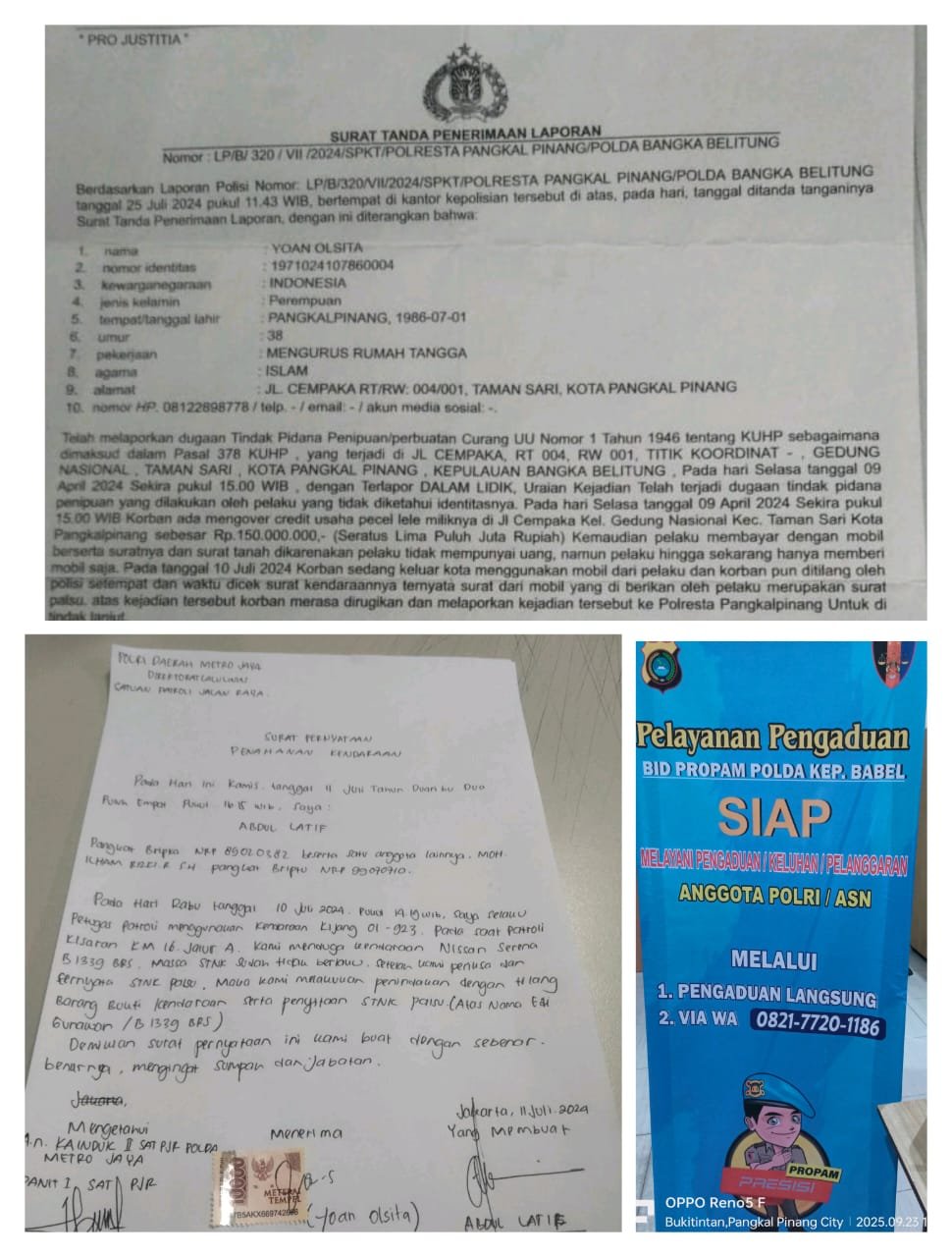 Yoan Olsita Gugat Keadilan: Kasus Penipuan Tak Kunjung Tersangka, Propam Polda Babel Diminta Tegas